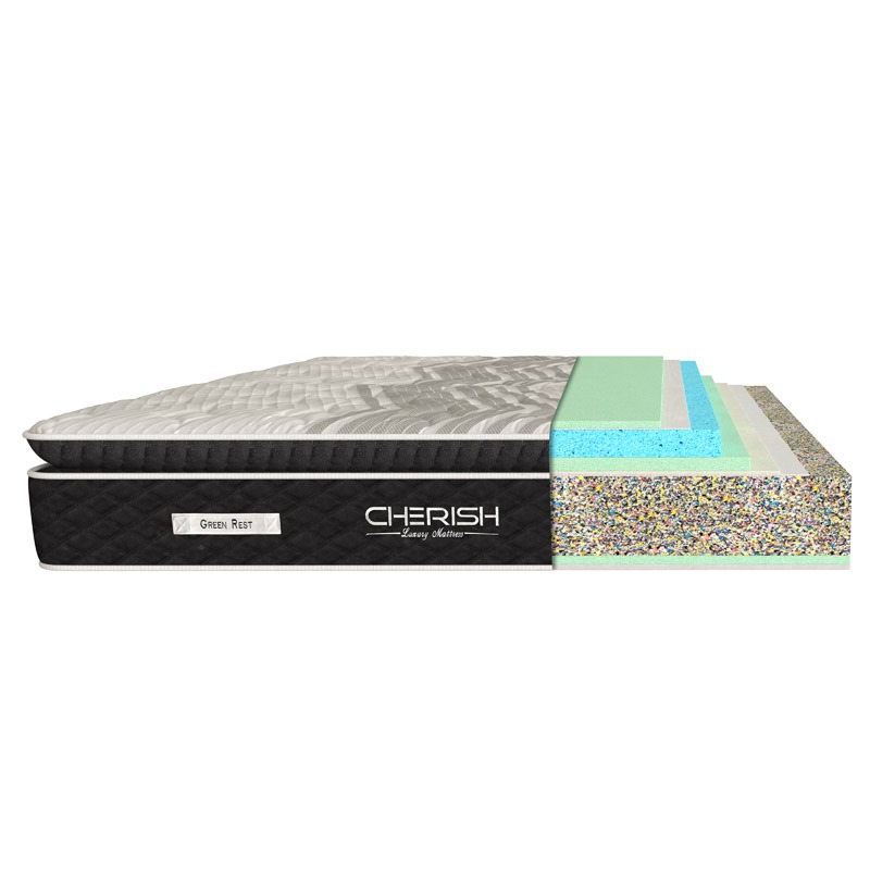 تشک چریش با ساختار چندلایه و طراحی لوکس، ترکیبی از راحتی و دوام را فراهم میکند. در لایه بالایی، مموری فوم با خاصیت انطباقپذیری فوقالعاده، فشار را از نقاط حساس بدن کاهش میدهد و خوابی آرام را تضمین میکند. زیر این لایه، اسفنج یورو لوکس در پد تشک، حس نرمی و لطافت بینظیری ایجاد کرده و به سطح تشک جلوهای مجلل میبخشد. در هسته مرکزی، از ریباند با تراکم بالا استفاده شده که علاوه بر استحکام، پشتیبانی کاملی از ستون فقرات ارائه میدهد. این لایهبندی دقیق و مهندسیشده، تجربهای کمنظیر از راحتی، سلامت و دوام را به ارمغان میآورد.